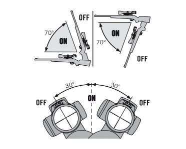 A Swarolight funkció természetesen alapfelszereltség a Gen2-es Ds céltávcsöveknél is. A fegyvert függőlegesen megdöntve 70 fokot, automatikusan ki, illetve bekapcsol. Ugyanez, ha oldalirányba elfordítjuk 30 fokot. (lásd a lenti ábrát)
