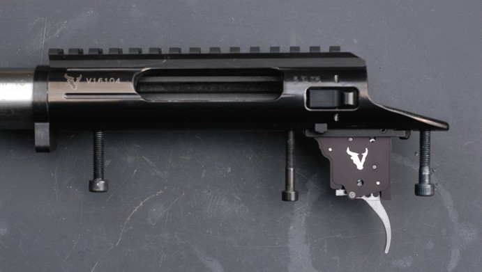 Az FTR puskájukkal a Victrix tervezője pontosan ott kezdte, ahol én – egy hatalmas fegyvercsővel! Az USA-ból származó Benchmark fegyvercső egy kicsit több, mint 32 hüvelyk hosszú, egyenes kúpos a farrésznél 1,25 hüvelyktől a csőtorkolatig. A fegyvercső-blank egyébként az egyetlen olyan alkatrész, amelyet nem a Victrix készített.