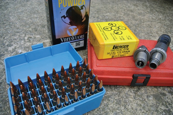 Csak egy hétig volt lehetőségem a két puska mellett - hogy kifejlesszek egy töltést, felszereljem és beállítsam a March távcsöveket mindegyikre, majd versenyen lőjem őket. A tölténykészítési szakértőnk, Laurie Holland segít nekem - néhány egyszer használt RUAG lőszerhüvelyvel és Berger 175 gramm OTM Taktikai lövedékekkel (amelyeket ő ideálisnak tart a Stubbyhoz és "remélhetőleg rendben lesznek" az FTR-hez), valamint a Vihtavouri N150 porral.